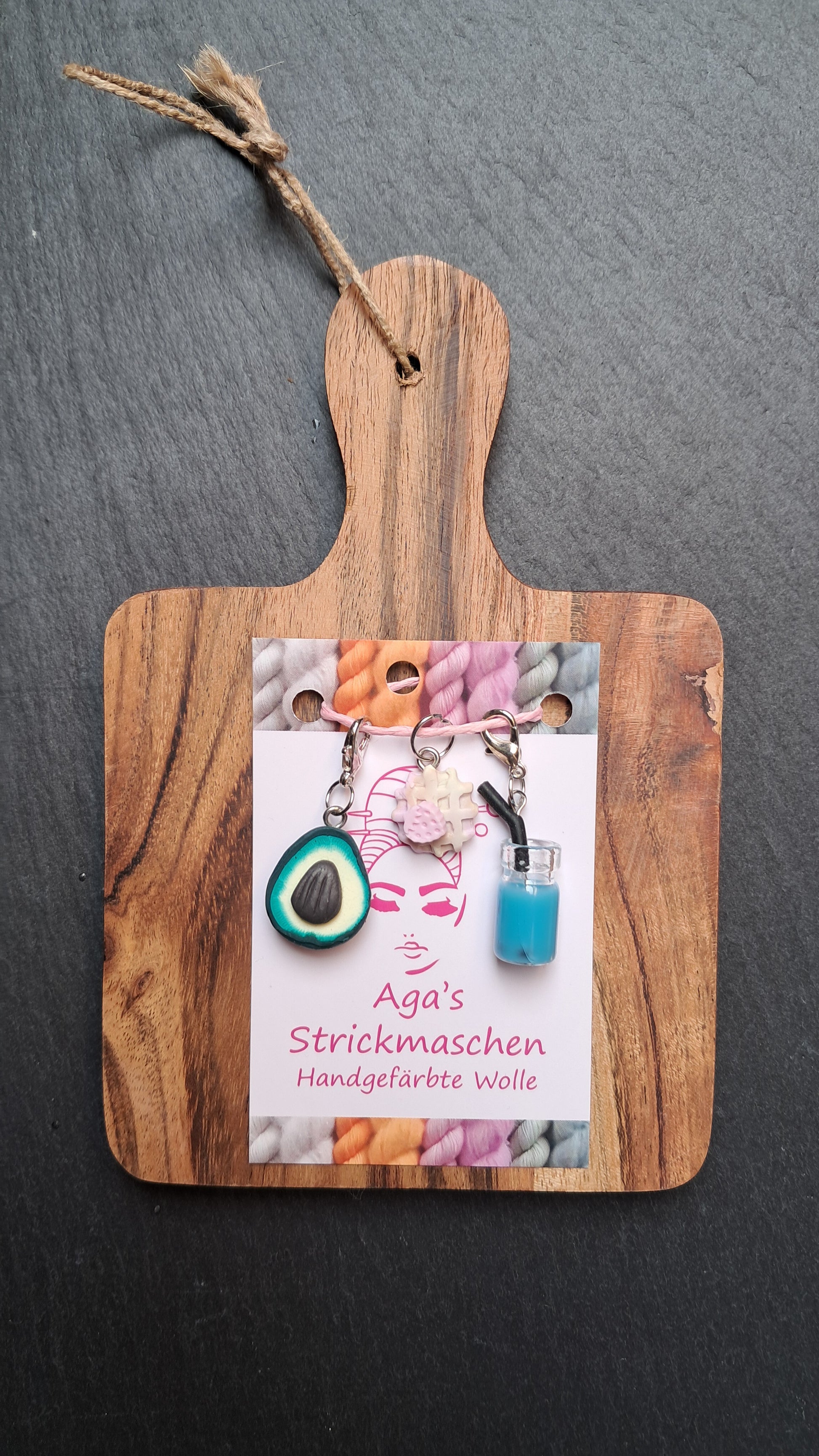 Ein süßes Maschenmarkierer Set bestehend aus 2 Fortschrittsmarkern und 1 Maschenmarkierer.